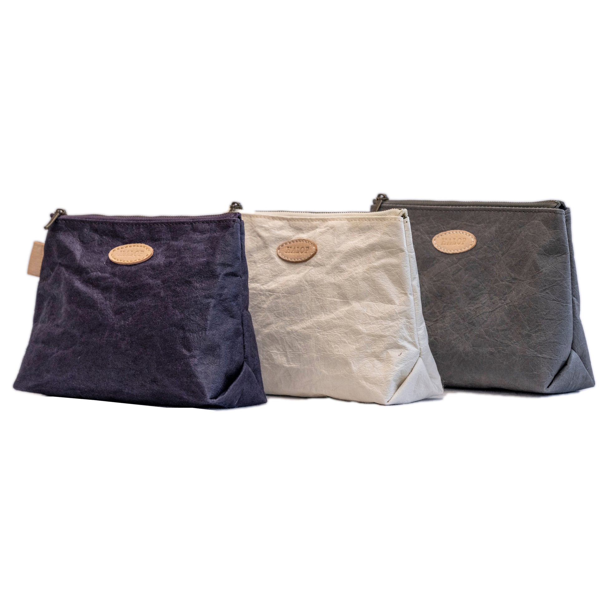 かつて私たち日本人の暮らしに深く根づいていたものの、近年では利用が減少していた和紙。独特の風合いや温もりといった固有の価値と機能を見つめ直し、現代のライフスタイルに適した製品として1点ずつ手作業によってリプロダクト。表情をじゃましないシンプルなデザインのポーチは、マチありで見た目以上の収納力が自慢。