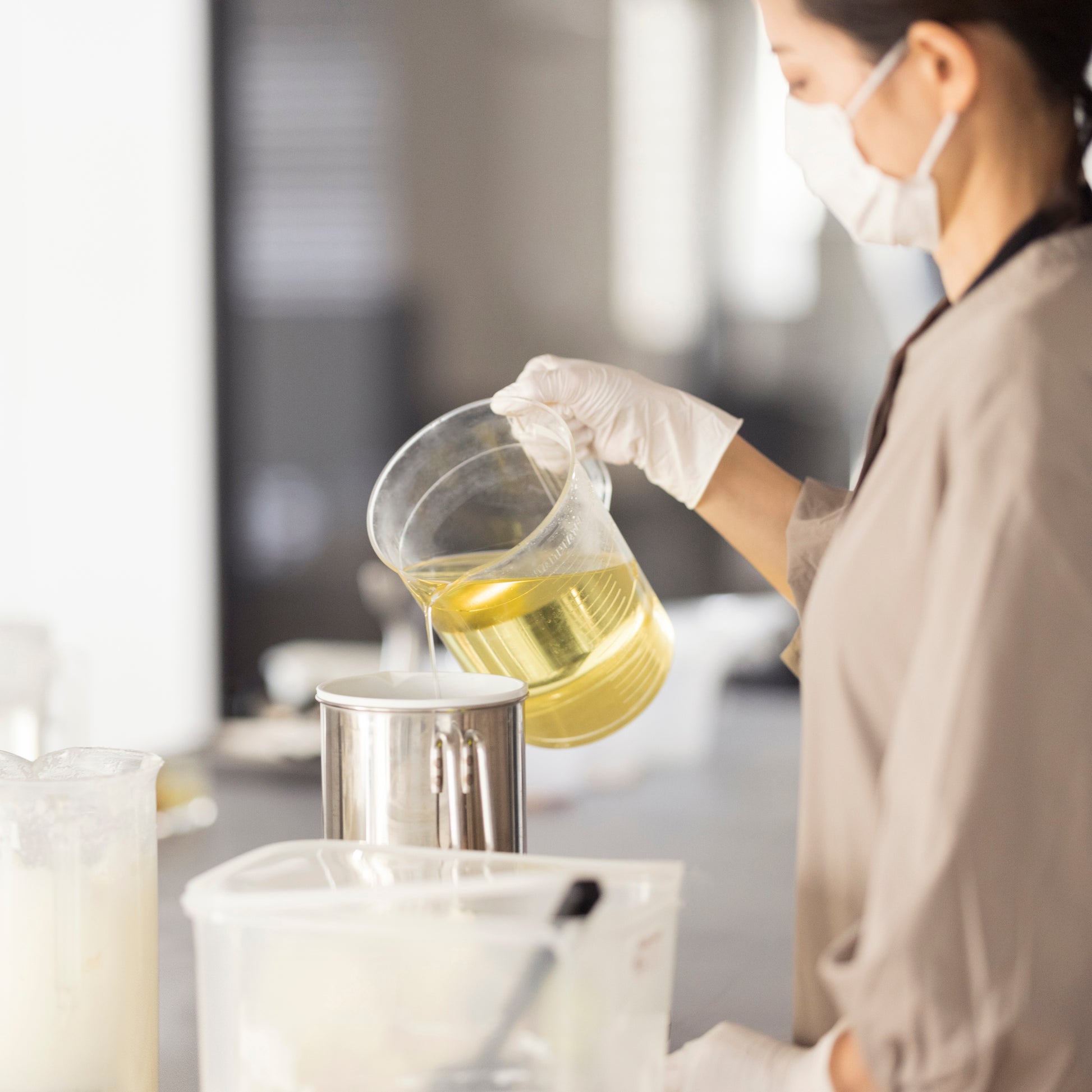 それぞれ異なる油脂成分を持つ植物オイルに向き合い、肌質や肌コンディションに合わせて独自の比率で配合。数10種類の植物オイルから選りすぐった油脂の特性を最大限生かすため、熱を加えず低温熟成する「枠練りコールドプロセス製法」を採用。原料に含まれる良質な成分が壊れにくいので、洗いあがりはしっとり高保湿。
