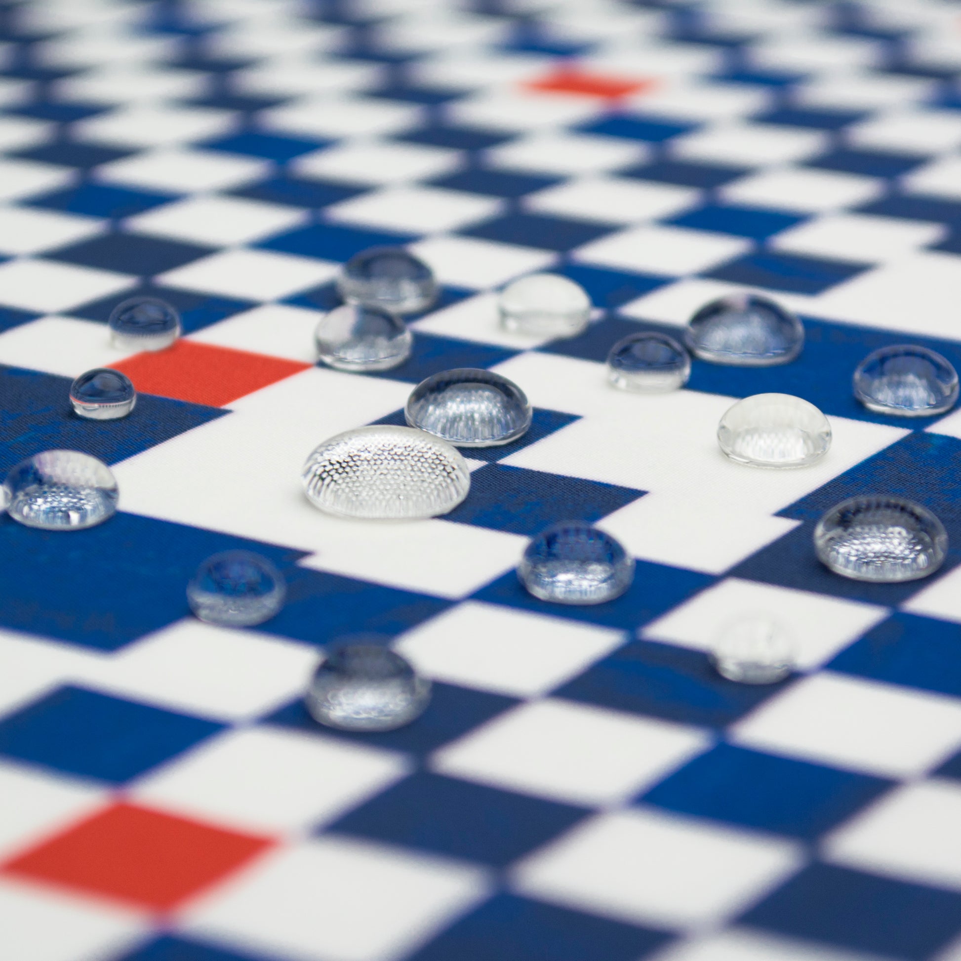 水滴と面との接触角が150度を超えるという超撥水加工で、水をしっかり弾く「超撥水風呂敷 nagare」。