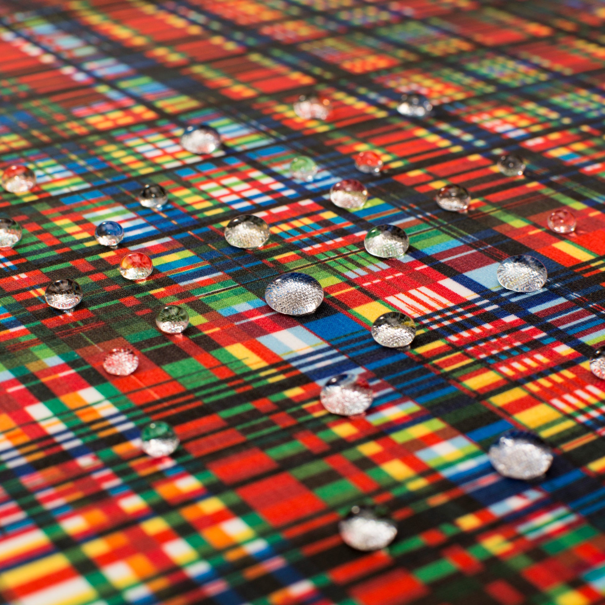 水滴と面との接触角が150度を超えるという超撥水加工で、水をしっかり弾く「超撥水風呂敷 nagare」。