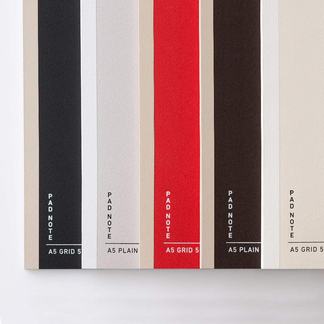 メモパッドのように1枚の紙を簡単にはがせる「PAD NOTE」シリーズのA5サイズ。糊の配合と量を絶妙に調整して開きをよくし、ノートとして使っても1枚のきれいな紙として使ってもOK。ノートに書いた内容をまとめるときやアイデアを出し合うとき、人に情報を共有したりするとき、思考の整理をするときにも便利で役立つのが魅力。