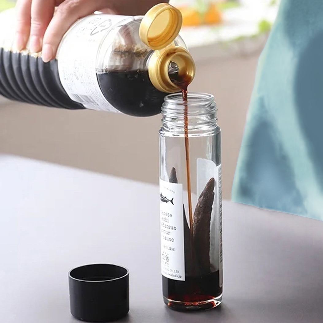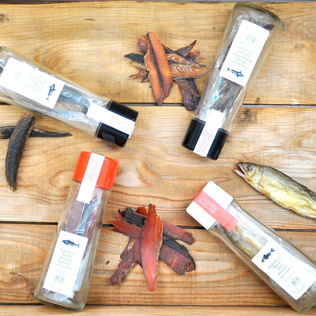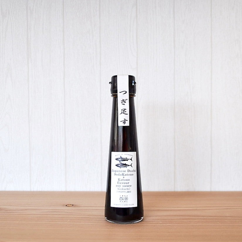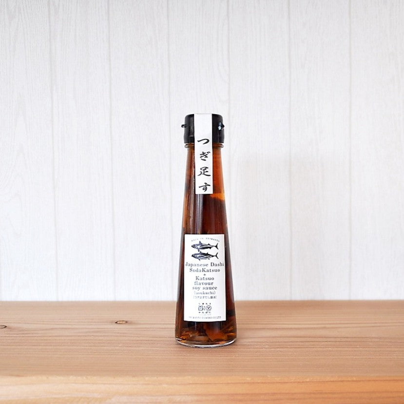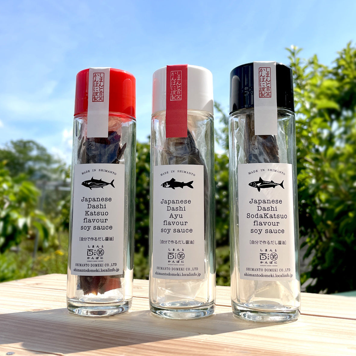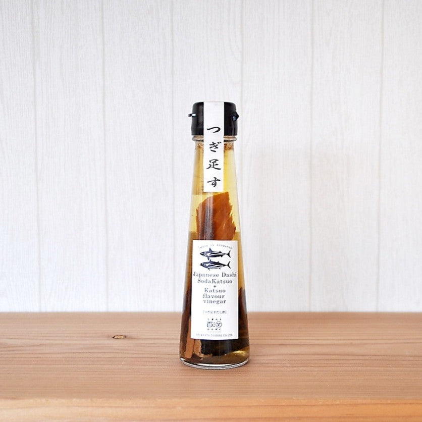 高知県産をはじめ国産のかつお節が入った瓶に、四万十産の特別な醤油と無添加の米酢を合わせたぜいたくな1本。醤油には四万十川に沿って地下に流れる、ミネラル豊富な伏流水を仕込み水として使用。いろいろな料理に合うのでアレンジ自由自在。中身が減ってきたら、自分の好きな醤油やお酢をつぎ足せば10回ほど利用可能。